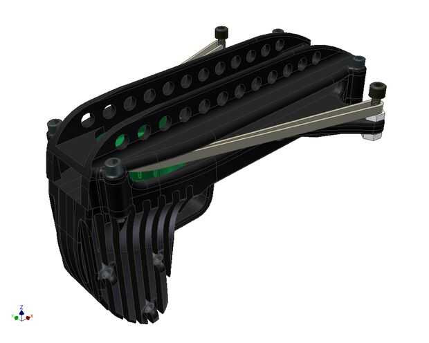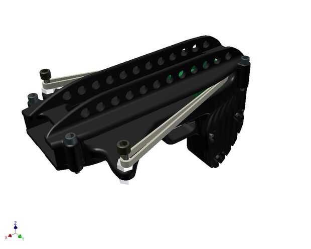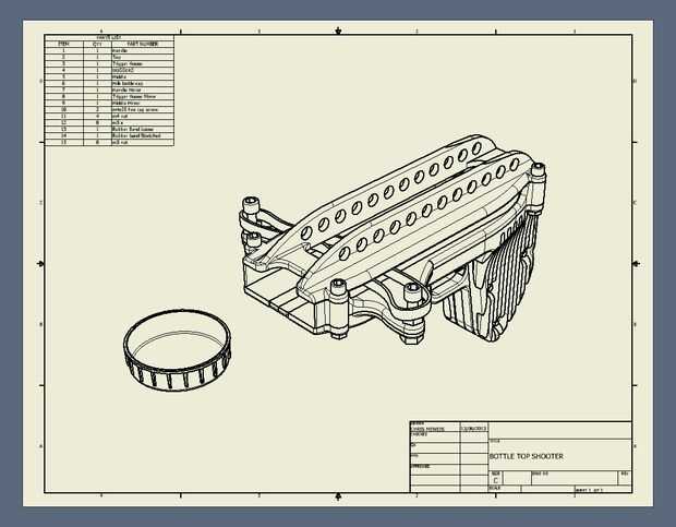 El diseño del tirador está en 8 piezas, que pueden ser impreso sobre la superficie plana de la máquina de MakerBot®, las piezas serán ensambladas con tornillos y pegadas para la fuerza adicional.