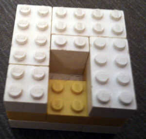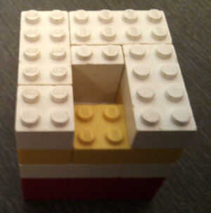 La primera foto muestra la media y la base conectada, la segunda, muestra sólo la mitad, la mitad alterna los colores como la parte superior y la base es toda roja.