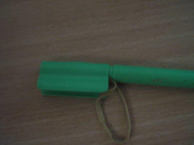 Sólo necesitas una goma y un lápiz. Es así de simple.Paso 1: Hacer el tirador de la pluma Desarmar la pluma. Luego atar la cinta de goma alrededor de un extremo, como se muestra.Paso 2: Tirar del tirador de la pluma No apunte a ojos los. O personas e