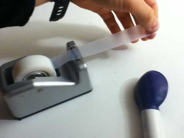 el comienzo de un tirador de simple plumaPaso 1: tapeing su abrazadera primero tome su abrazadera y su cinta y la cinta de su pinza en el extremo del lápiz agradable y seguraPaso 2: tapeing su tubo de precisión cinta sobre el lápiz sobre una pulgada