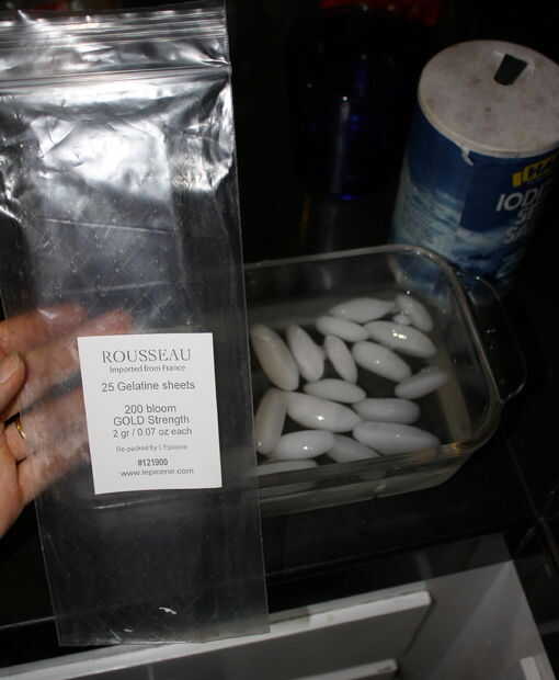Básicamente, un paquete de gelatina en polvo tiene aproximadamente el mismo poder de ajuste 4 plata u hojas de gelatina oro. Hay mucho más detalle se va a aprender (ver Google ayuda!) y se pueden hacer matemáticas de conversión, pero realmente no es necesario para este plato.