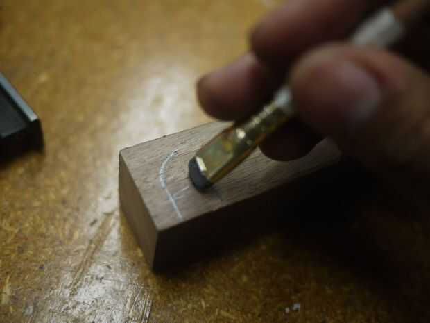 - Dividí el mango en tercios, tanto a lo largo de su longitud y anchura - estas sirvieron de proporciones básicas para poder dibujar curvas simétricas. Dibujado a lápiz