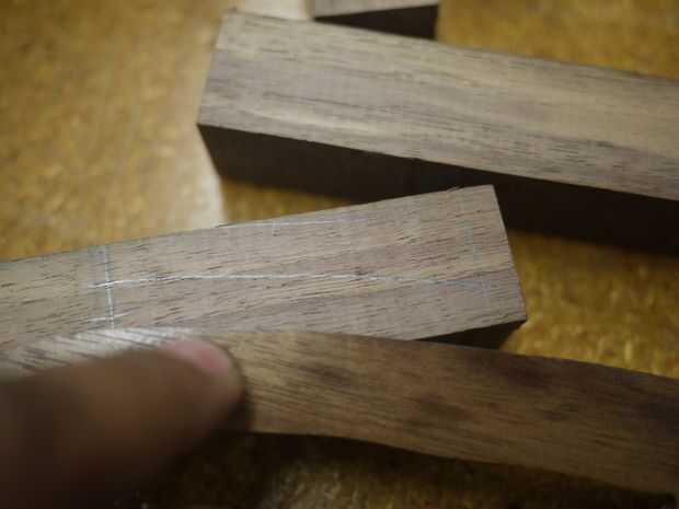 Luego, dibujé mi diseño directamente en los espacios en blanco. Usé una escuadra de combinación y francés curvas para dibujar el contorno de la forma del mango. Solamente dibujó en uno de los controladores, entonces todos los demás de la primera base.