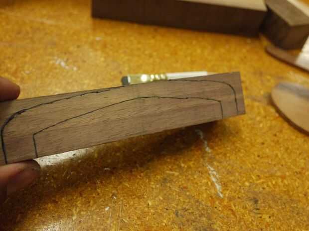 - Usé dos secciones de mis curvas francesas para dibujar un arco limpio a través de la longitud de la palanca y hacer una transición redondeada a los lados. También dibujado a lápiz.