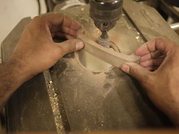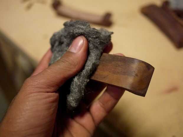 Para el paso final me cambié a un lijado manual. Utiliza trozos de papel de lija en las esquinas apretadas y luego utilizar grano 120 para suavizar todos los bordes y finalmente todo dio una lija de grano 220. También, al final de mi lijado fue difícil decir que asa fue el original - había quitado suficiente madera de todos ellos para equilibrar el tamaño.