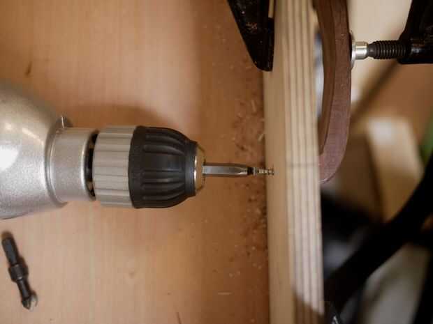 Utilicé tornillos de #8 de 0,75 pulgadas para montar las manijas - mis frentes de cajón son 0,5 pulgadas de espesor, así que esto sólo dio ~0.25 pulgadas del asimiento dentro del mango. Esto funcionó, pero apenas - tornillos un poco más larga hubiera sido mejores. Para compensar esto taladré orificios avellanados extra profundos para cada uno de los tornillos, dándoles un poco más de la mordedura. Con la mordaza en su lugar, me condujo a cada uno de los tornillos en la empuñadura - luego repitió el proceso con el resto de los cajones.
