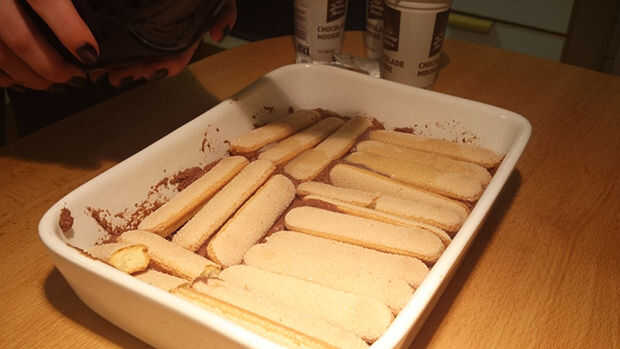 Hacer tiramisú era más simple de lo que imaginaba; la verdadera aventura fue cazando a los ingredientes de este postre italiano tradicional. Tres tiendas de abarrotes más adelante e innumerables excursiones por el pasillo de la cookie, finalmente enc