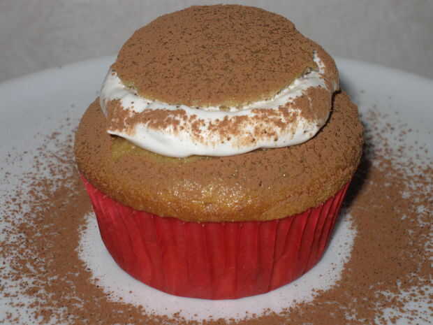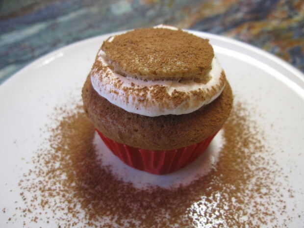 Espolvorear o tamizar polvos de cacao café sobre cada cupcake.
