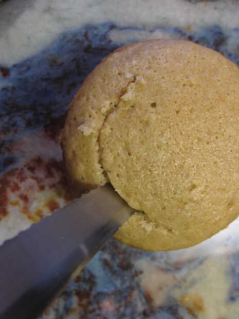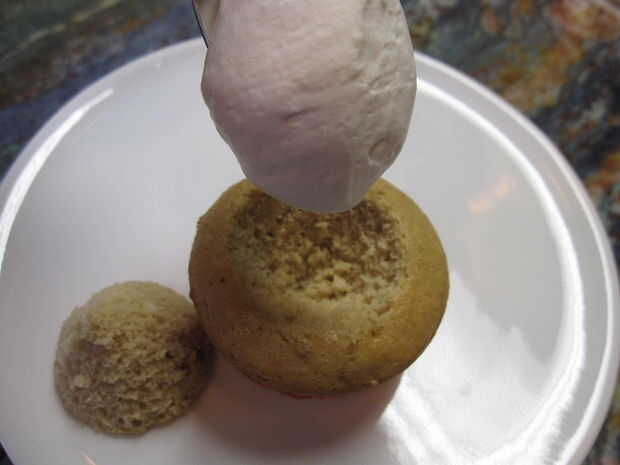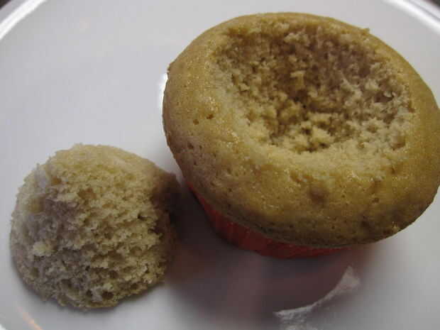 Una vez que los cupcakes se enfrían, use un cuchillo y cortar una forma del cono de la parte superior de cada uno.