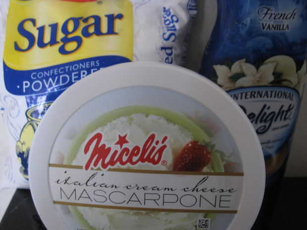 Poner el queso Mascarpone, el azúcar y la crema en un bol y mezclar en med alta a unos 8 minutos. Debe buscar el glaseado cremoso, ligero y delicioso. (Probar y si lo prefiere más dulce añadir azúcar en pequeñas cantidades).