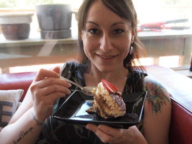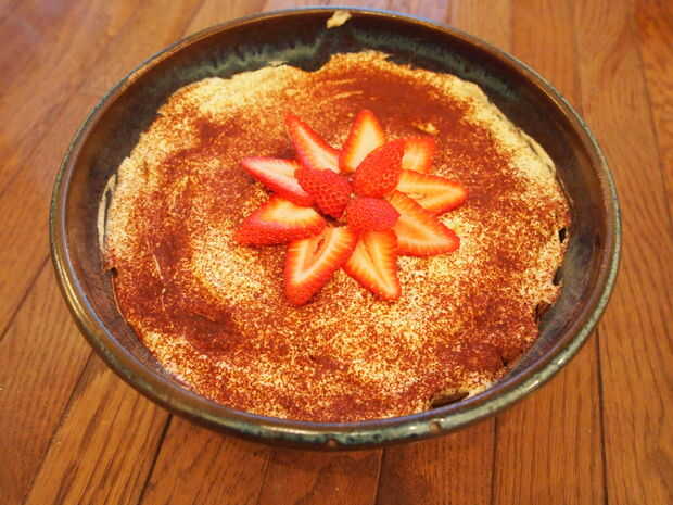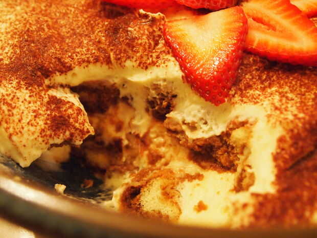 Tiramisú ([tiɾamiˈsu], Italiano ortografía: Tiramisù; iluminada. "pick me up" o "lift me up") es un postre italiano. Está hecho de ladyfingers (Italiano: Savoiardi) sumergido en café, en capas con una mezcla batida de yema de huevo y queso mascarpone y aromatizado con vino de Marsala y cacao. [1] la receta ha sido adaptada en muchas variedades de postres, pasteles y otros postres.
