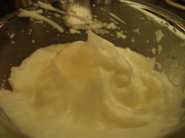 1. Oh mira, primero la punta.  No Asegúrese que sus claras de huevo yema en todos, ninguno, zippo, nadda!  El contenido de grasa de la yema de huevo hace casi imposible formar picos rígidos.  Lo mismo ocurre con el tazón de fuente de su mezcla, si se utiliza un recipiente de plástico que tiene una alta probabilidad de aceites incrustados en el plástico de la lixiviación hacia fuera y arruinar su día.  Así que para comenzar, utilice sólo puras claras de huevo mezcladas en un recipiente de vidrio o acero inoxidable.