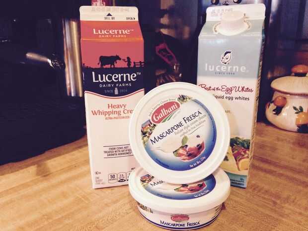 Este ingrediente fue más difícil de pronunciar, pero un poco más fácil localizar. Estaba bastante seguro de mascarpone era un tipo de queso cremoso, así que sabía que sería la sección de refrigerados. En este punto estaba en el teléfono buscando "Dónde encontrar mascarpone en tienda de comestibles". Las respuestas fueron por todo el tablero: en el refrigerador, al lado de la crema de leche, entre el yogur y el queso crema de leche. Terminé encontrando las tinas pequeñas de mascarpone en la sección de quesos de especialidad de la tienda de delicatessen.