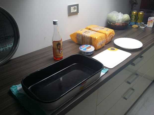 Ahora preparan la bandeja en la que pone galletas del bebé mojado. Tome una tabla y un pequeño cuchillo con el cual cortará las galletas de bebé exceso en ambos extremos de la bandeja.