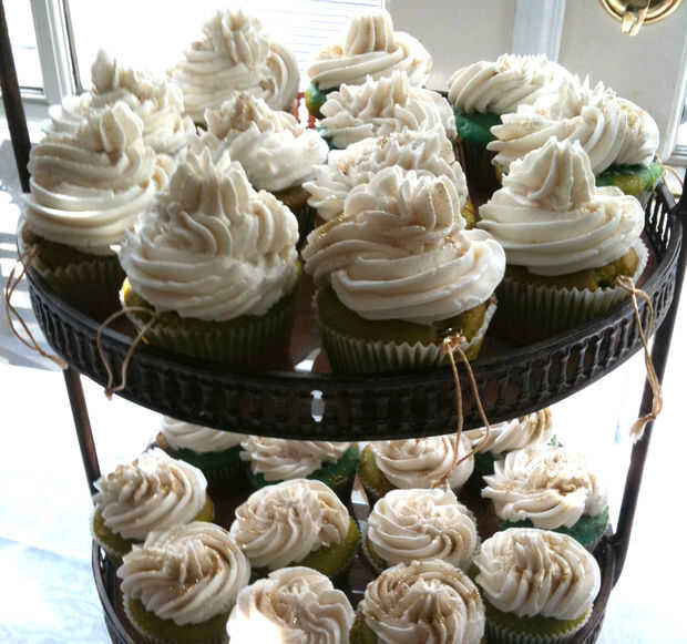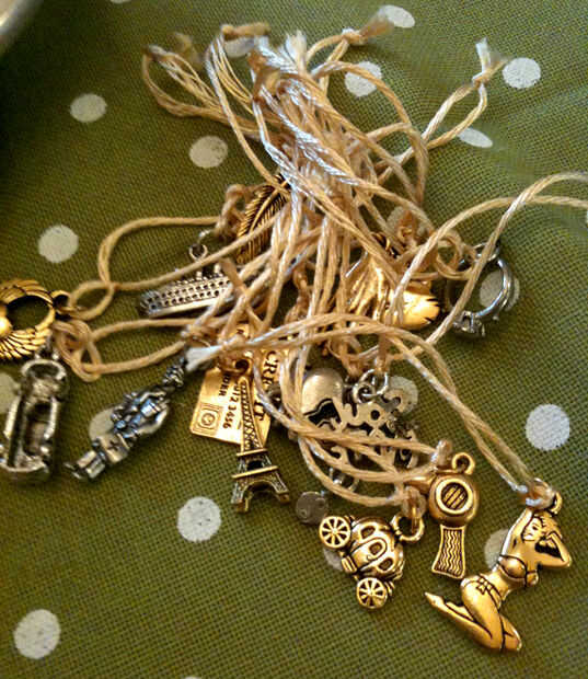 esto es una tradición que se remonta a la época victoriana. Decidí usarlo en nuestra boda, porque la tradición sonaba divertido. Básicamente, se reúnen algunos encantos, uno de Dama de honor y durante una función de novia antes del gran día - cada chica consigue elegir una cinta al azar y saque un encanto que representa una fortuna. Idealmente, la tradición lo tiene para que le tire el encanto de una torta, con las chicas que se reunieron alrededor de él. Pero, tenía 17 damas de honor (incluyendo niñas flor y anillo) por lo que no pude conseguir un pastel tan grande. Mi solución fue usar cupcakes! Hace que sea sencillo en números.