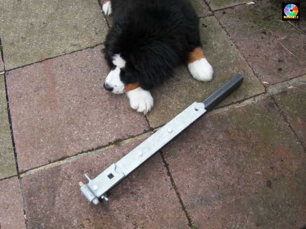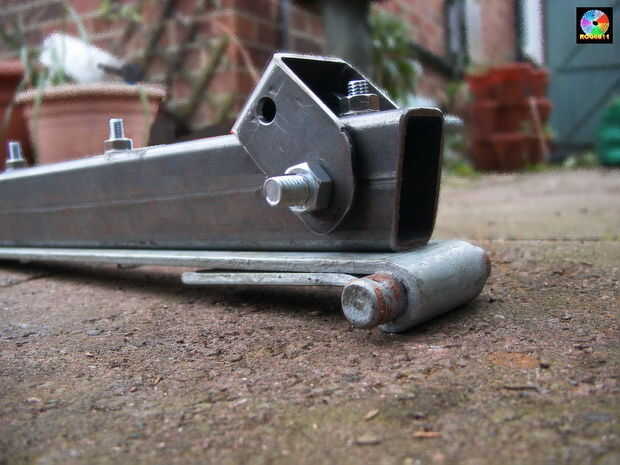 Segundo cuadro muestra conectado a un tramo corto de tubo rectangular que será el extremo inferior de la manija de palanca. (también muestra una biela conexión temporal que fue utilizado para comprobar la geometría de la vinculación.