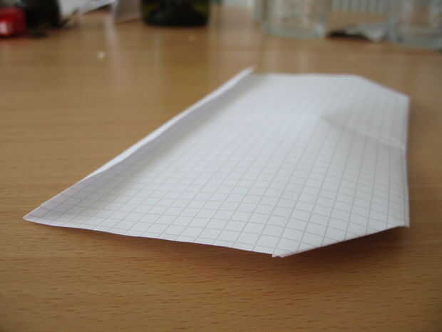 esta increible planeador puede sentarse en su escritorio una mosca para siempre. bueno, al menos si tienes un ventilador que sopla en ella. Este aeroplano de papel está conectado por la cuerda a dos polos para la estabilización y cuando el aire de un
