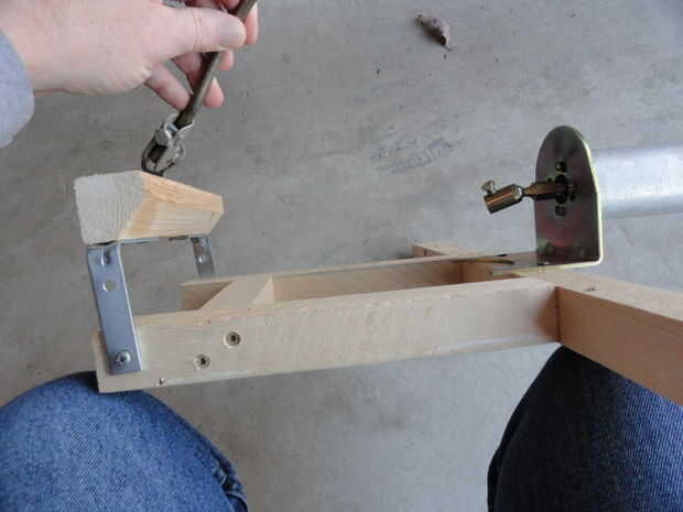 - Usando soportes L, coloque un 2 x 2 que es apenas suficiente para salvar el soporte 2x2s (ver imagen). Asegúrese de que gira libremente