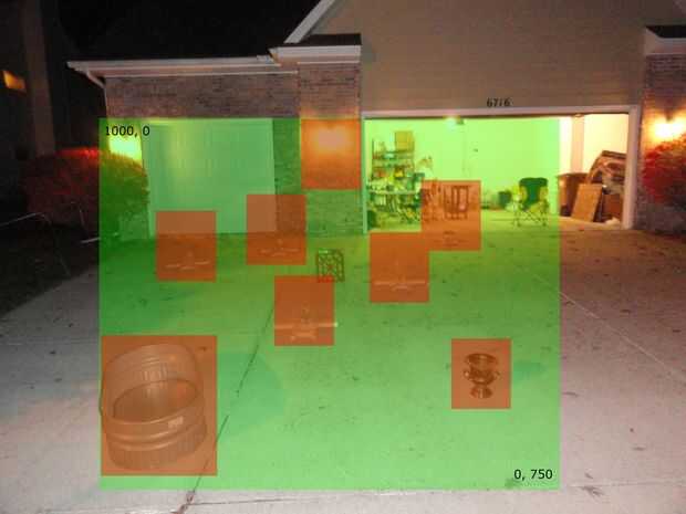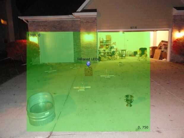 Una vez cableado hasta los Wiimotes en mi programa de C#, escribí un programa que me permita definir donde en la entrada de mi casa sería cada destino. Lo configuro para que pude ir al "Modo de aprender", define cada destino, pulse el botón A mi Wiimote para definir las coordenadas superior izquierda de la meta y B definir la parte inferior derecha. Esto me permitiría organizar los objetivos, sin embargo he querido y no tener que duro código cualquier coordenadas en el juego sí mismo. Muy práctico. Ver las fotos de abajo para un visual.