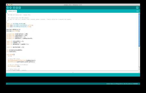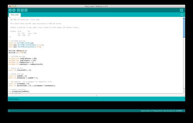 He utilizado las 2 bibliotecas mencionadas en el paso 1. ShiftPWM debe modificarse ligeramente para quitar de lo comandos serie - interfirieron con la transmisión DMX.