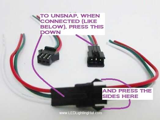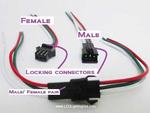 - Mantenga el extremo macho de conectores lado tira LED. Carga se acumula en los puntos, y quiere del lado de alimentación del circuito (especialmente con circuitos de alto amperaje).
