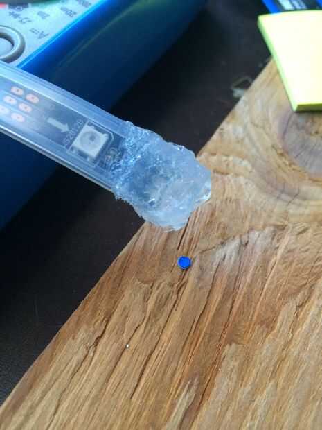Como paso a los LEDs de prueba un poco más de tiempo, sellé tanto como yo pude apagado con sellador de silicón Permatex 66B. He utilizado con antes sobre cortafuegos de coche para sellar los agujeros que se perforaron para electrónica procedente de la batería así que sabía que sería muy bien con la electrónica. Yo, tan suavemente como sea posible, llena los huecos abiertos en las tiras de LED con el sellador y reprimieron las tiras (¡ suavemente!) en un vicio para mantenerlo hasta que seca. Menos tienes mucho alrededor del sellador el más claro va a salir. Esperé generalmente 12 horas para estar a salvo de ellos perfecto secado. Exceso de sellador fue cortado después que se secó.
