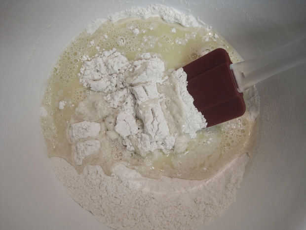 azúcar canela pan crujiente receta:1 2/3 tazas de harina1 taza de azúcar morena (yo usé crudas)1 cucharada de canela1 cucharadita de bicarbonato de sodio1/2 cdta sal1 huevo (batido)1 taza de aceite (yo usé coco)1/2 taza agua calienteInstrucciones de