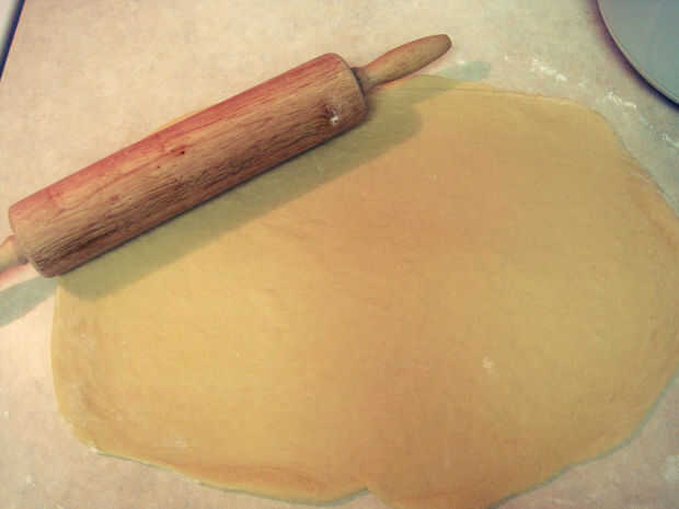 6. Coloque la masa sobre una superficie enharinada y estirar en un rectángulo de 12 x 9... ish forma.