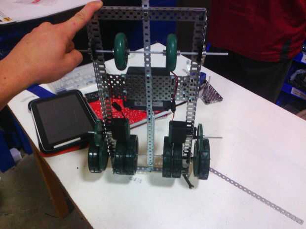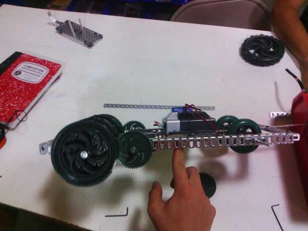 3. use 5" eje para motor con un pequeño espaciador, seguido por un engranaje de 64 diente y un collar