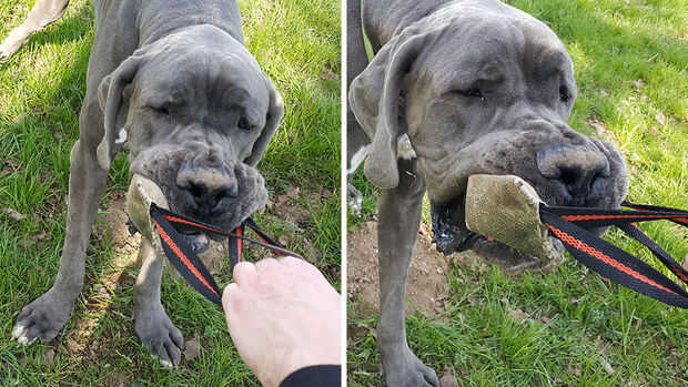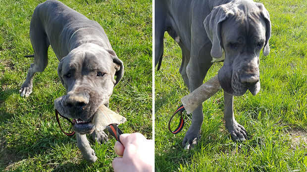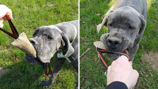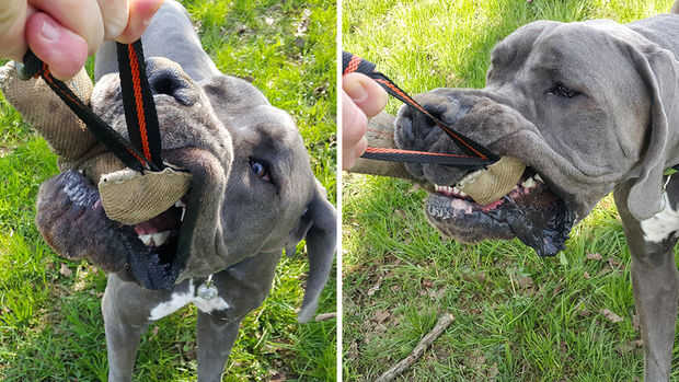 nuestro perro Dodger Ripea los juguetes del perro normal aparte en unos 15 minutos. "Juguetes indestructible" toman un poco más ;)Aprendí cómo hacer un nudo de puño de mono en un festival malabares unos años--hice a Dodgers un juguete de cuerda