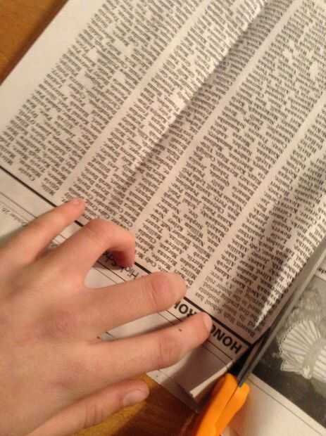 a continuación, usted querrá encontrar algunos artículos en el diario que te interesen y recorto... Elegí una palabra impresión grande (música) y artículos para el frente y mi Horóscopo del día para la parte de atrás. Tomar su palabra/artículo principal y póngala en su círculo de arcilla y presione guardar allí y llenar el lugar vacío con artículos buscados al azar u otros. Mantener los artículos en el frente, voltear tu círculo hacia atrás y presiona otros artículos que. Quite todos los artículos y ver el resultado de la impresión del periódico. Establecer su círculo en su bandeja pero no horneado todavía.