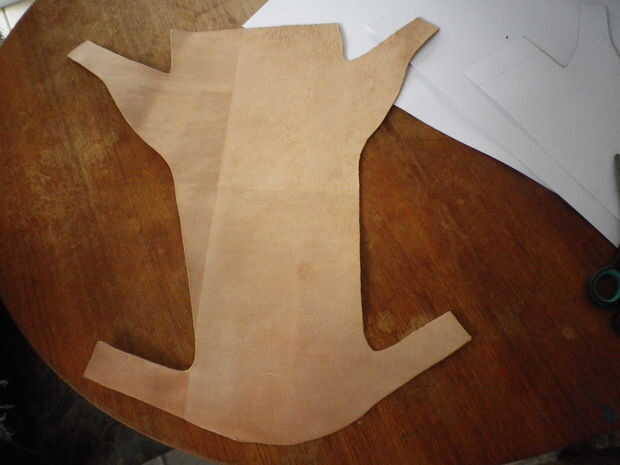 La foto muestra el corte hacia fuera de ocultar.  Me parece un poco como una piel de animal.  Se pueden ver la simetría y también el cono de arriba a abajo.  también es la parte inferior de la aljaba y ángulo y esto permite que las flechas que sobresalga de la parte superior en forma escalonada, haciéndolo más fácil de alcanzar sobre el hombro y sujete una flecha individual.