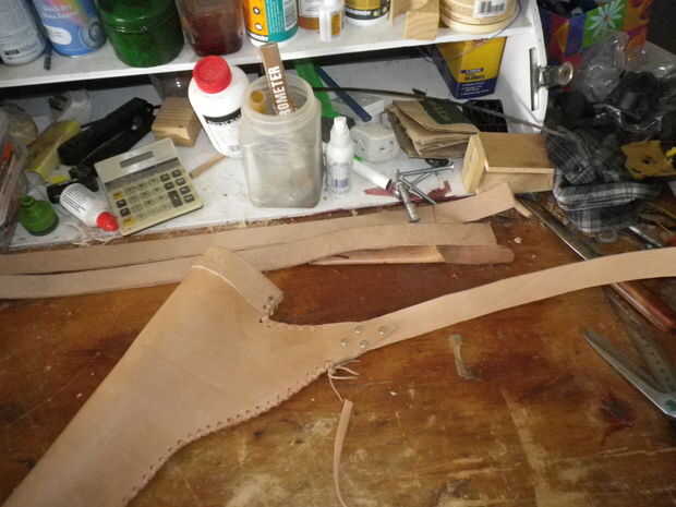 Se utilizó una perforadora para perforar un agujero a través de los dos extremos de la correa sobre el carcaj con la correa separada entre.