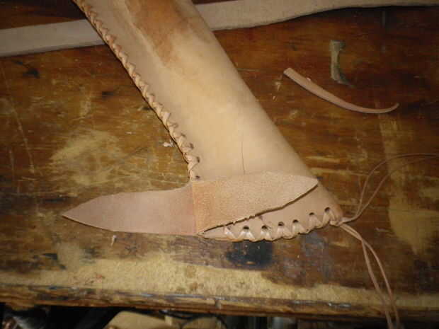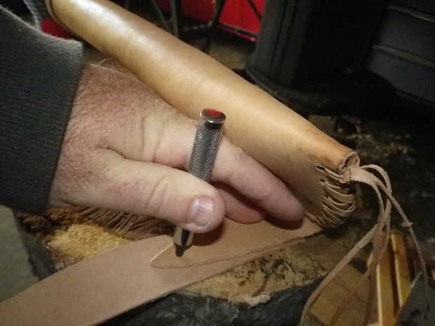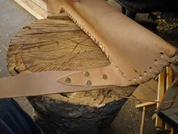 el mismo proceso fue utilizado como en el paso anterior, excepto que esta vez los remaches sólo tenía que ir a través de dos capas de cuero en lugar de tres.