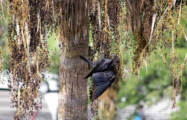 La razón que los cuervos estaban tan interesados en las palmas, resulta, era que los árboles fueron fructificando. Así que aquí, en el centro de la ciudad, tuve un momento National Geographic.