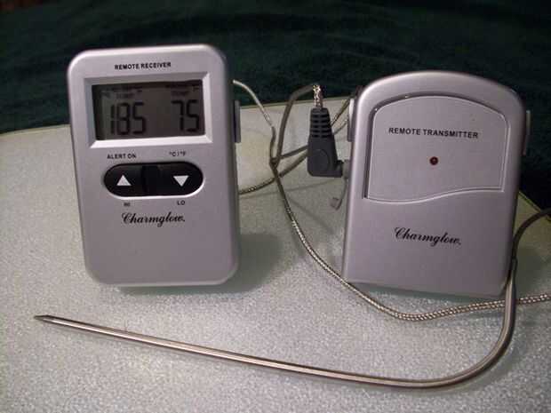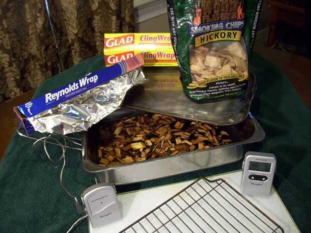Siguiente en nuestra lista necesitamos envolturas de plástico, aluminio, astillas de madera de fumar y una sonda de temperatura interna. La envoltura de plástico se utilizará para envolver nuestra carne en el adobo paso. El papel de aluminio se necesitará para hacer la 'tapa' para el fumador. Las virutas de madera por supuesto proporcionará el humo de nuestra carne. En cuanto a la sonda de temperatura, este elemento es muy útil tener pero no es absolutamente necesario. Fumar sin saber que la verdadera temperatura interna de la carne es más bien una aventura de prueba y error. La temperatura interna de la carne nos proporciona información vital en las diferentes etapas de cocción. Sondas de temperatura la mayoría no son caras que. La que se muestra aquí vende para alrededor de $15 USD y viene con un transmisor el receptor puede llevar a otras habitaciones de la casa para mayor comodidad. Una sonda básica que puede ser insertada en la carne para monitorear a la temp interna mientras se cocinan lentamente será suficiente para nuestras necesidades.