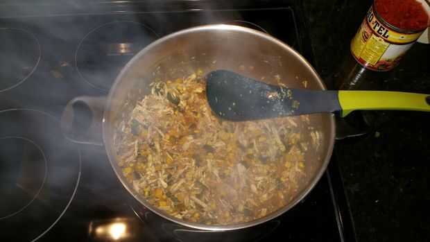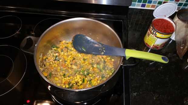 Una vez que se haya evaporado la mayor parte de los bourbon y cerveza, la gota en los pimientos y maíz.