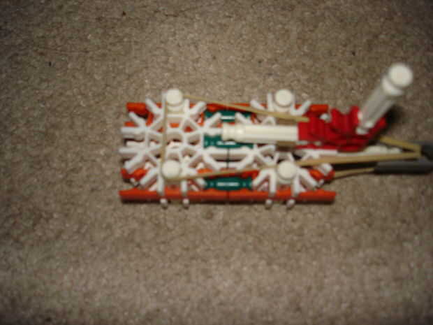 esta es mi arma favorita de K'nex construido por la propia. es una foto única pero puede ser muy potente dependiendo de cuántas gomas le agregue es el mecanismo de disparo. Me gusta porque hace buen uso de piezas de flex. Trabajar la pistola tirando