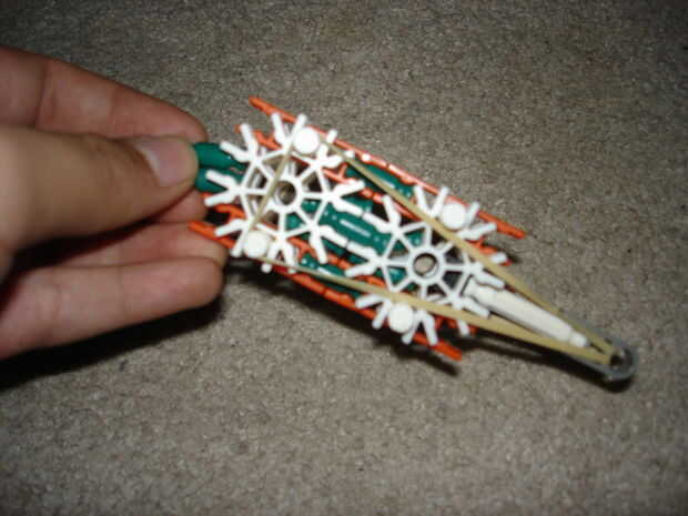 esta es mi arma favorita de K'nex construido por la propia. es una foto única pero puede ser muy potente dependiendo de cuántas gomas le agregue es el mecanismo de disparo. Me gusta porque hace buen uso de piezas de flex. Trabajar la pistola tirando
