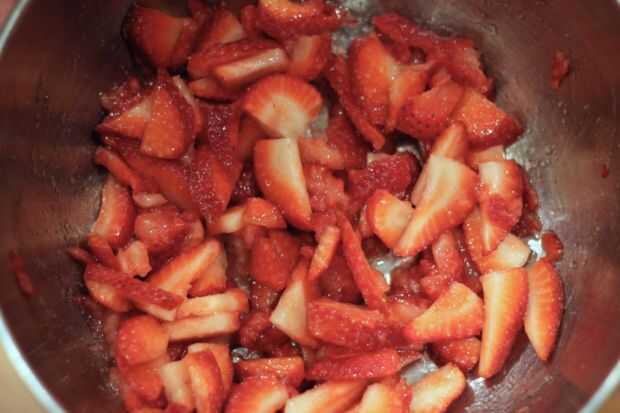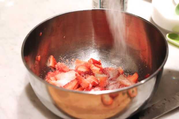 Tarta de fresas fresca de CyannIngredientes:1 al horno tarta de 9"1 taza de agua3 cucharadas de fresa con sabor a gelatina (Jell-o)3 cucharadas de maicenagranulado de 1 taza de azúcar1 cdita de vainilla4 gotas de colorante de alimentos rojo, opcional