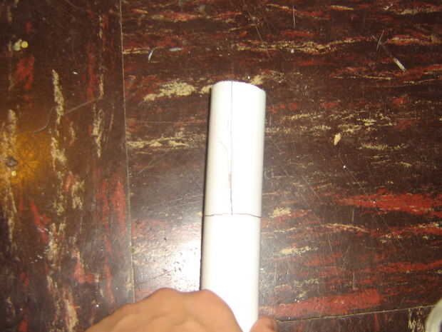 Tomar el pedazo de 7 pulgadas de PVC y corte estrecho hacia abajo de 3 pulgadas.