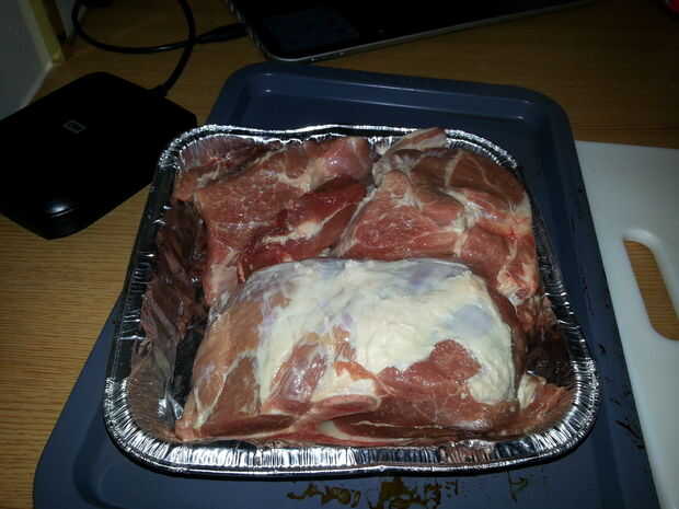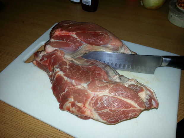 Empiece por precalentar el horno a 300 grados. A continuación, prefiero cortar el tope de cuartos; parece que ayuda con el tiempo de cocción. Yo también recorte de la grasa en el borde exterior de la carne. Lugar una vez cortado y recortado, en el lata/plato de cocina.