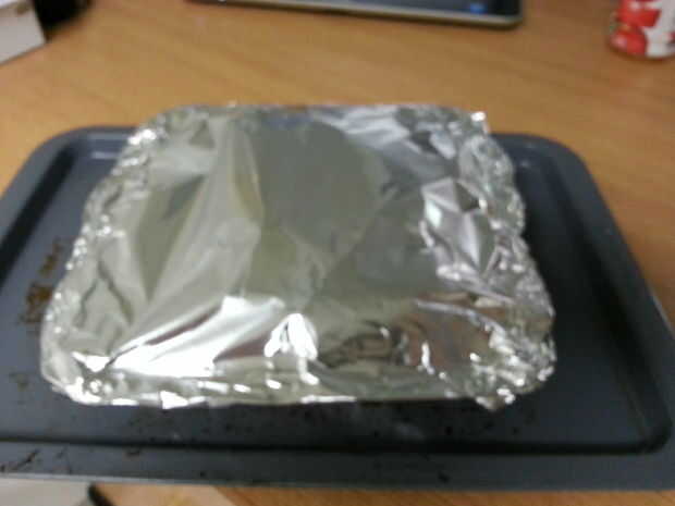 Una vez que has cubierto el molde en papel de aluminio, colocar en el horno a una altura media y hornear a 300 de aproximadamente 4 horas. Mantengo a la temp baja para asegurarse de que el cerdo es tierno, jugoso y tan fáciles de separar que puede ayudar mi niño. Después de 4 horas de cocción, gire el calor hasta 350 grados para la última hora.