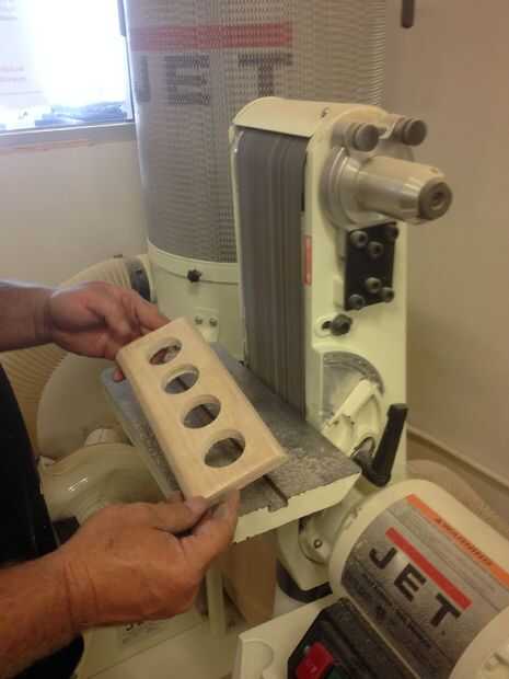Puesto que la sierra no hace agujero más suave del mundo, puso en marcha el top a lo largo de la lijadora de banda para limpiar el lado que voy a mostrar.