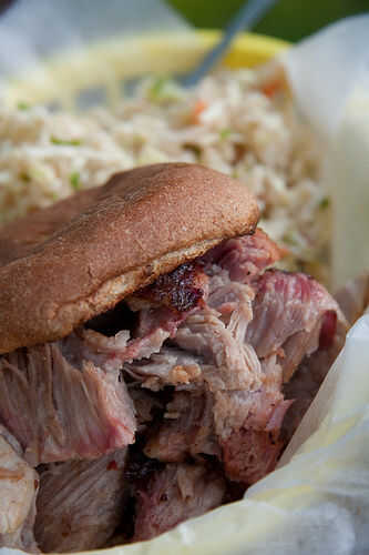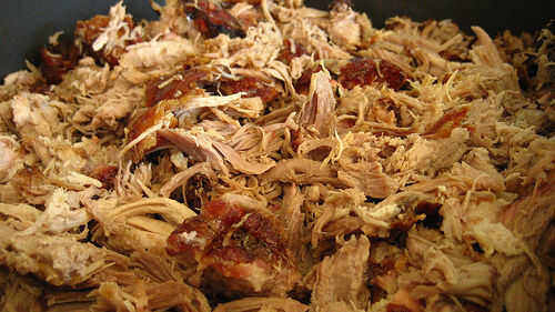 Asado de cerdo, lento cocinado con vino de Borgoña, caldo de carne, salsa de soja, jengibre y tomillo. La carne de cerdo es luego triturado y comido el pan de sándwich con salsa BBQ.Ingredientes:1 Paletilla de cerdo (el más grande que usted puede enc