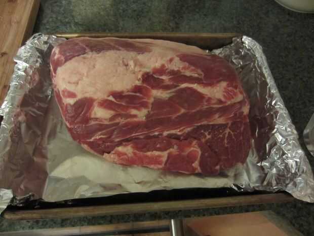 Para este Instructable, usé un cerdo 5,5 libras con un corte bien marmolizado de dulzura extra y humedad. Me gusta mantener la grasa en la parte superior como el goteo se agrega mucho sabor a la carne.