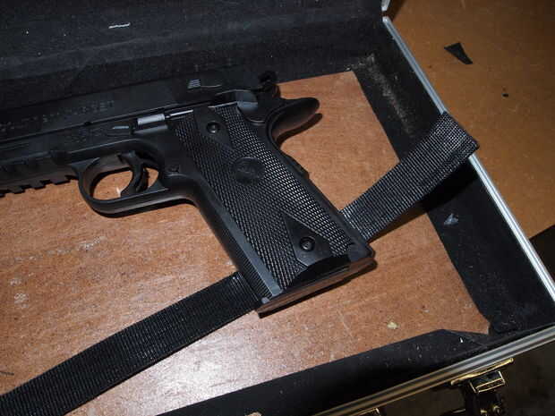 Para ello, utilice el velcro doble cara y marque donde quiera a las correas. Usted querrá correas en unas direcciones para minimizar el movimiento en todas direcciones. Primero debe marcar donde quieres colocar las correas. Entonces en alrededor de la mitad de la cinta, pegamento caliente lo hacia el interior del maletín. Asegúrese de probar ya sea que la correa va todo el camino alrededor de la pistola antes de pegar.
