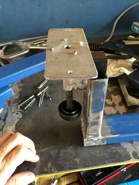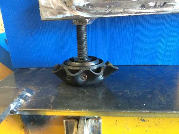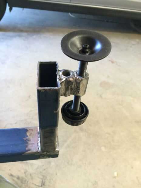 En la parte inferior de la espalda apoyo i pt una tuerca larga de 1 pulgada y un tornillo largo para ajustar hacia arriba y abajo