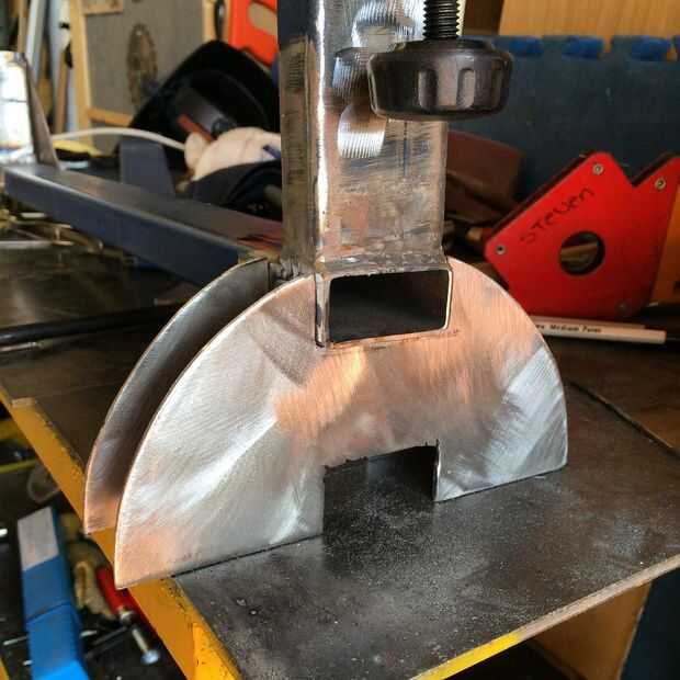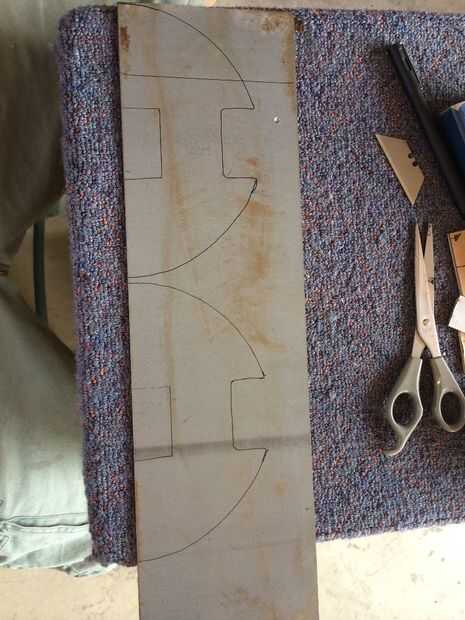 Hace una plantilla de cartón y luego cortar las patas de metal. Dos de ellos.