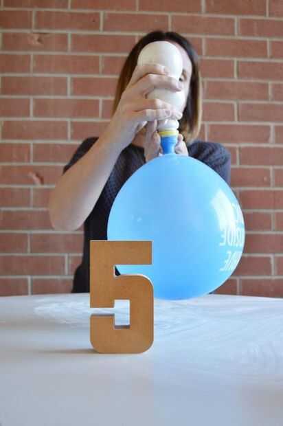 Se voltea la botella y agitar en el globo.
